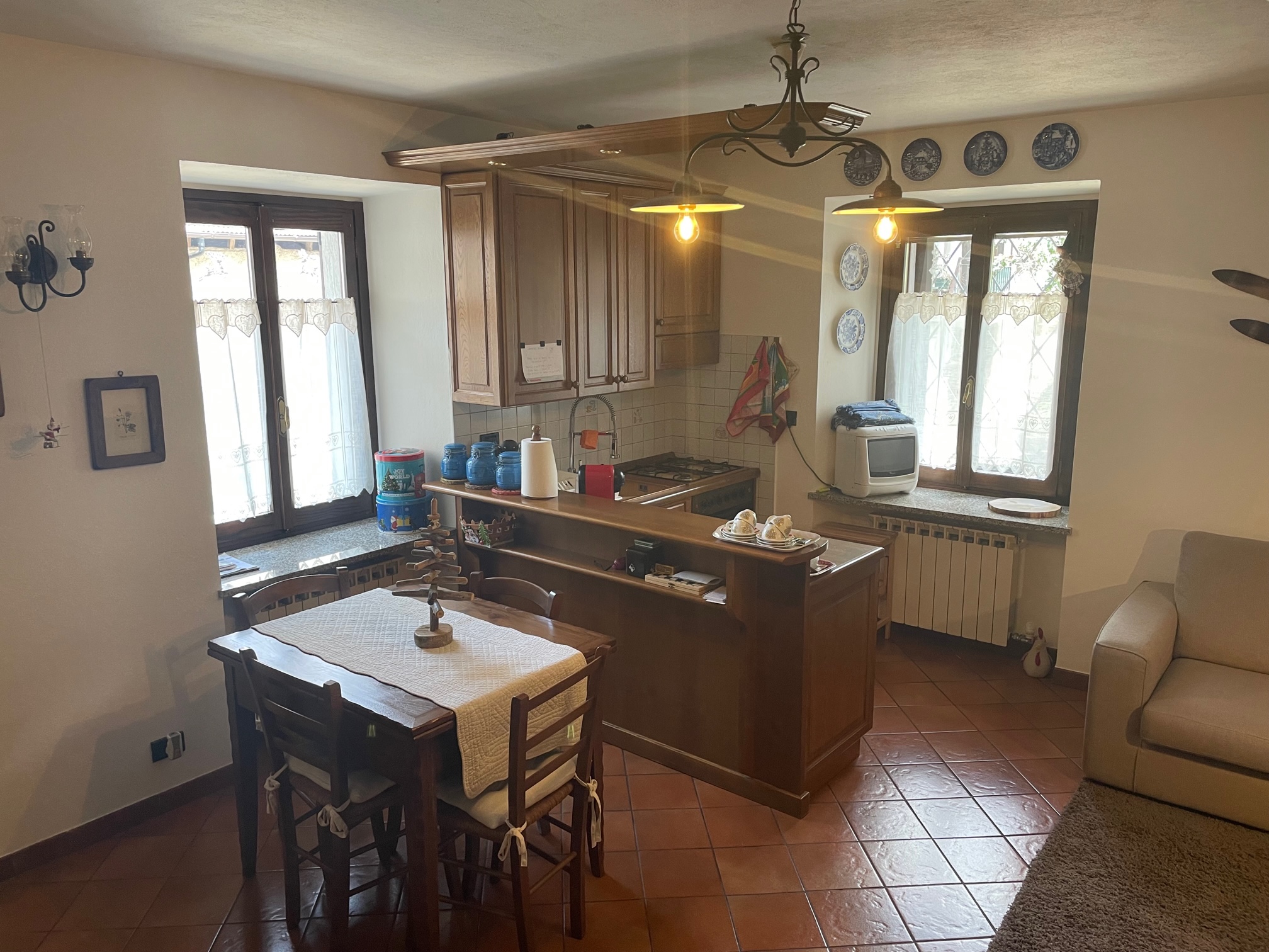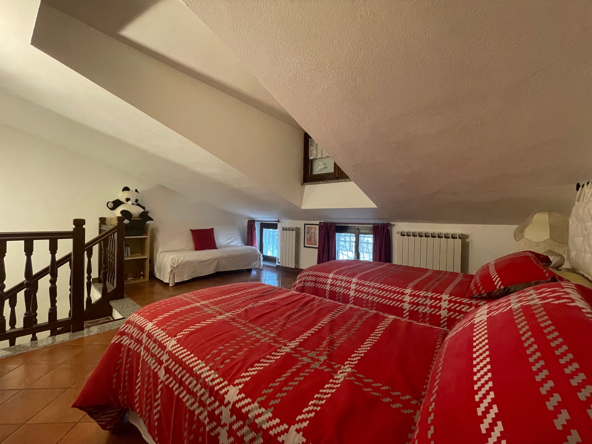 primo piano ingresso diretto su stupendo soggiorno con angolo cottura, scala interna in legno massello che porta al secondo piano composto da camera da letto matrimoniale, bagno e balcone, al quarto e ultimo piano ampia camera da letto.